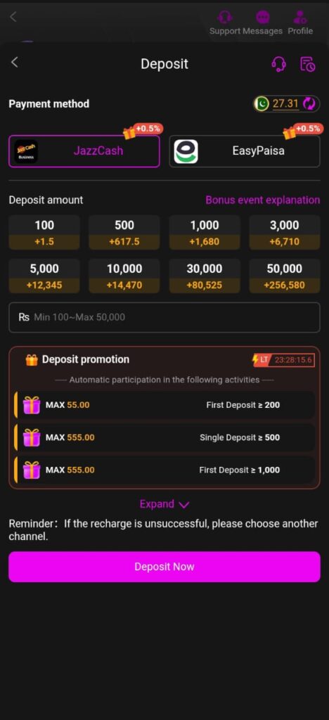 This is a huge feature for players in Pakistan. G555 Game is fully integrated with local payment systems. When you win, you don’t have to wait for days or deal with complicated bank transfers. You can withdraw your winnings directly to your JazzCash or Easypaisa account, often receiving your money within minutes.